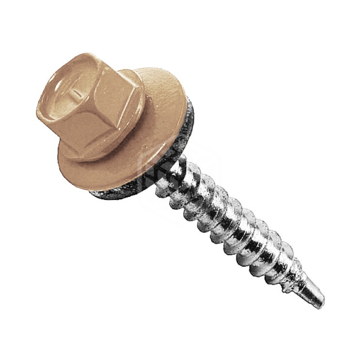 Саморез кровельный, слоновая кость, 4,8х510 мм, 200 шт для соединения кровельных материалов (металлочерепицы и профнастила) с металлическими или деревянными каркасами стен и крыш. Саморез представляет собой шуруп с шестигранной головкой, окрашенной в различные цвета порошковой краской, в комплекте с шайбой и резиновой прокладкой, способной выдержать воздействие внешних условий окружающей среды и обеспечивающую гидроизоляцию крепления. Изготавливаются саморезы из стали с цинковым покрытием.