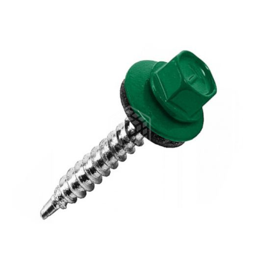 Саморез кровельный мятно-зеленый 5,5х19 мм, 4000 шт предназначен для монтажа кровли к деревянной обрешетке. Изделие обеспечивает плотное присоединение благодаря EPDM-уплотнителю. Саморез изготовлен из стали, цинковое покрытие защищает от коррозии, шестигранная головка покрыта порошковой краской.