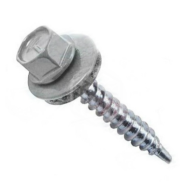 Саморез кровельный, серый, 5,5х19 мм, 250 шт для соединения кровельных материалов (металлочерепицы и профнастила) с металлическими или деревянными каркасами стен и крыш. Саморез представляет собой шуруп с шестигранной головкой в комплекте с шайбой и резиновой прокладкой, способной выдержать воздействие внешних условий окружающей среды и обеспечивающую гидроизоляцию крепления. Изготавливаются саморезы из стали с цинковым покрытием.