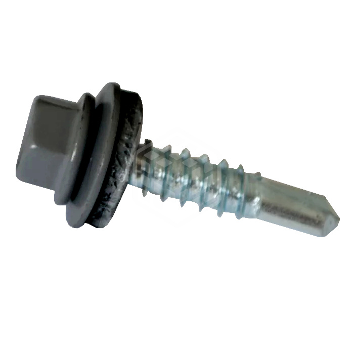 Саморез кровельный, графитовый серый, 5,5х19 мм, 250 шт для соединения кровельных материалов (металлочерепицы и профнастила) с металлическими или деревянными каркасами стен и крыш. Саморез представляет собой шуруп с шестигранной головкой, окрашенной в различные цвета порошковой краской, в комплекте с шайбой и резиновой прокладкой, способной выдержать воздействие внешних условий окружающей среды и обеспечивающую гидроизоляцию крепления. Изготавливаются саморезы из стали с цинковым покрытием.