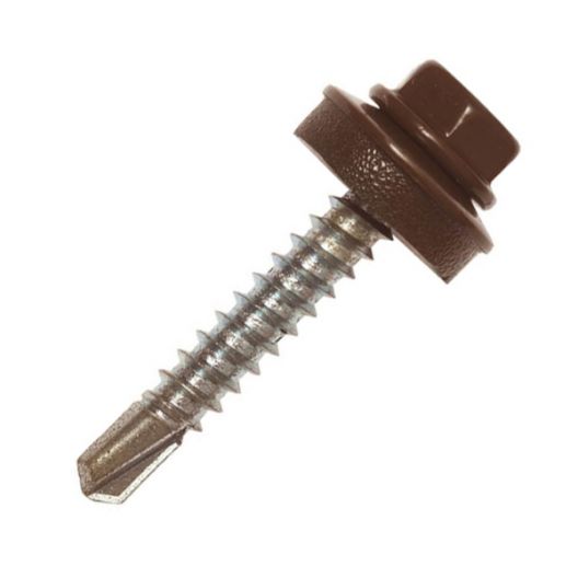 Саморез кровельный коричневый 5,5х32 мм, 250 шт используются для крепления кровельных материалов (металлочерепицы и профнастила) с металлическими или деревянными каркасами стен и крыш. Саморез представляет собой шуруп с шестигранной головкой, окрашенной в различные цвета порошковой краской, в комплекте с шайбой и резиновой прокладкой, способной выдержать воздействие внешних условий окружающей среды и обеспечивающую гидроизоляцию крепления. Изготавливаются саморезы из стали с цинковым покрытием.