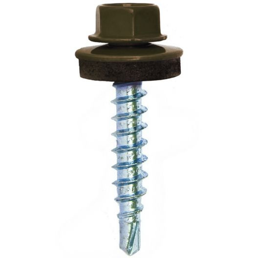 Саморез кровельный, серо-коричневый, 5,5х19 мм, 250 шт для соединения кровельных материалов (металлочерепицы и профнастила) с металлическими или деревянными каркасами стен и крыш. Саморез представляет собой шуруп с шестигранной головкой, окрашенной в различные цвета порошковой краской, в комплекте с шайбой и резиновой прокладкой, способной выдержать воздействие внешних условий окружающей среды и обеспечивающую гидроизоляцию крепления. Изготавливаются саморезы из стали с цинковым покрытием.