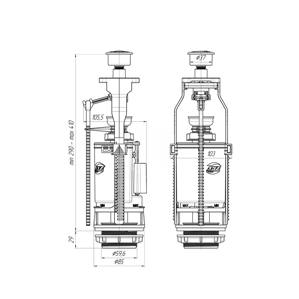 Арматура сливная Ани Пласт, с двойной металл кнопкой, WC7050M надежное решение для оснащения сливного бачка унитаза. Изготовлено из пластика, обеспечивающего долговечность механизма. Бесшумная работа обеспечивает комфорт при эксплуатации.