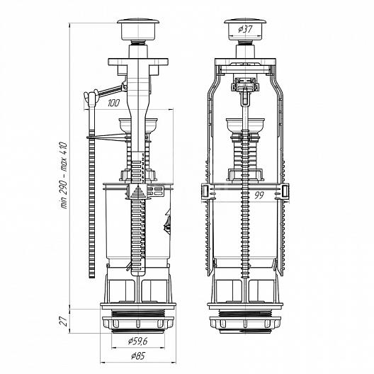 Арматура спускная Ани пласт, металлизированная кнопка, WC7030M