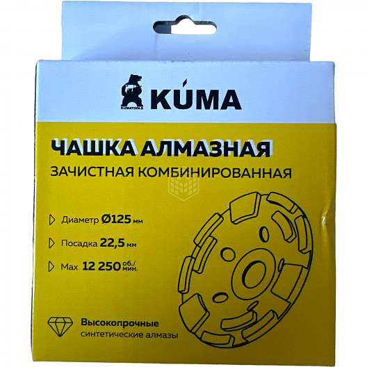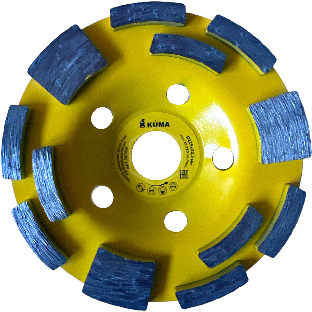 Характеристики товара Чашка алмазная зачистная KUMA, комбинированная, 125х22,2 мм, 12 сегментов, 82958