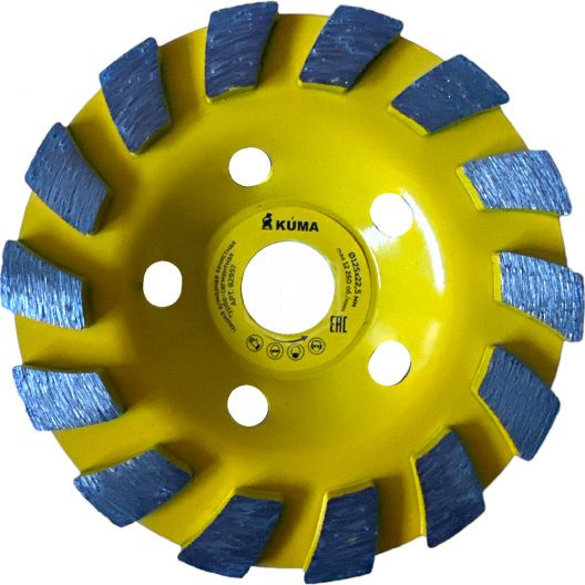 Характеристики товара Чашка алмазная зачистная KUMA, турбо-сегментная, 125х22,2 мм, 14 сегментов, 82957