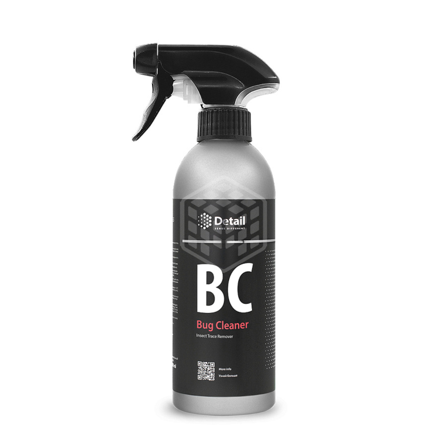 Чистящее средство Detail BC Bug Cleaner, 500 мл, DT-0177 эффективно устраняет следы от насекомых и загрязнения растительного происхождения. Благодаря ph-сбалансированной формуле, состав расщепляет загрязнение за несколько минут не повреждая поверхность автомобиля. Состав: ≥30% вода очищенная; <5%: амфотерные ПАВ, неионогенные ПАВ, гидроксид натрия, комплексообразователи, органический растворитель. Способ применения: 1. При помощи триггерного распылителя нанесите состав Bug Cleaner (BC) на обрабатываемую поверхность. 2. Подождите 2-3 минуты 3. Не дожидаясь высыхания состава, промойте обработанную поверхность водой под давлением.