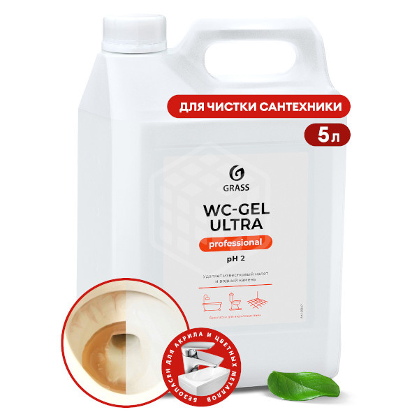 Чистящее средство Grass WC-gel ultra, 5,3 кг, 125837 для сан.узлов и ванных комнат на основе ортофосфорной кислоты. Используется для чистки ванн, душевых кабин, унитазов, водостоков, напольных покрытий, сантехники, фаянсовых изделий и кафеля от известкового налета, водного камня, потеков ржавчины, мыльных разводов и солевых отложений. Благодаря эффективной формуле быстро удаляет сложные и застарелые загрязнения. Безопасно для акриловых ванн и поверхностей из цветных металлов. Придаёт чистоту и блеск. Для профессионального использования.