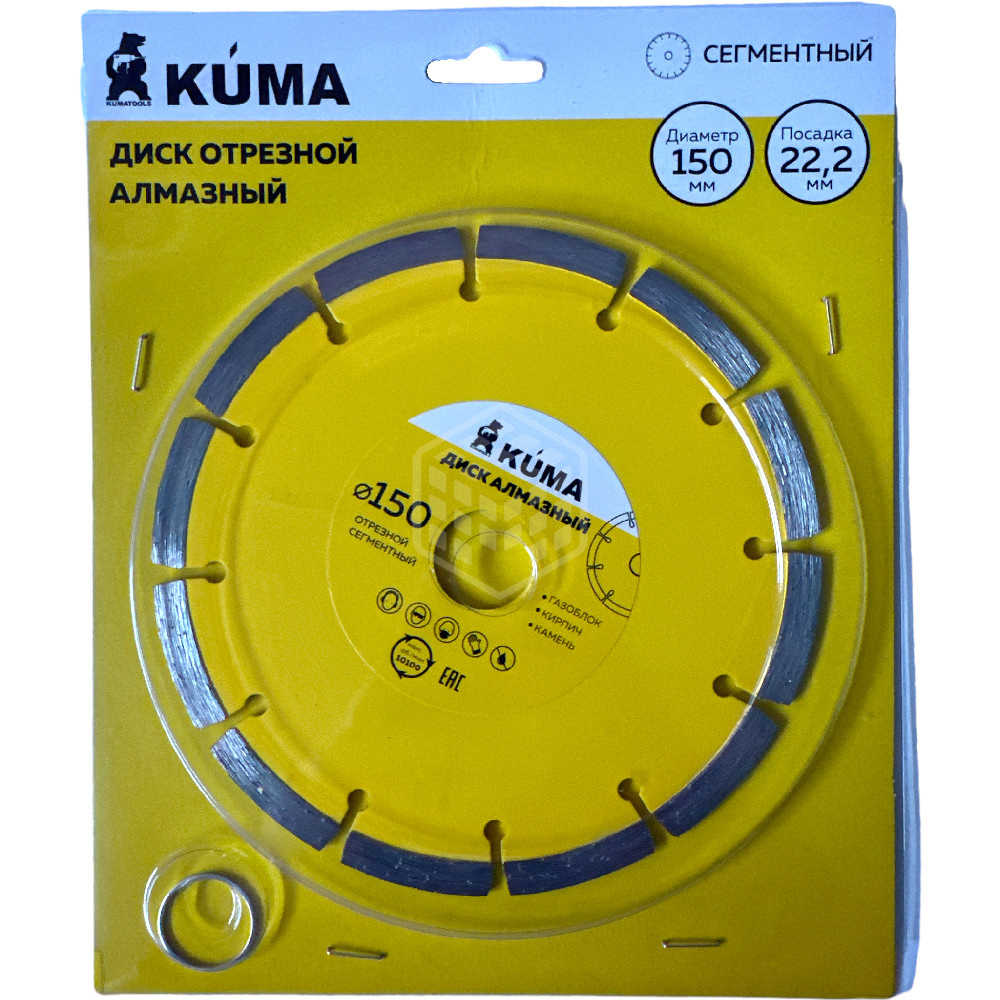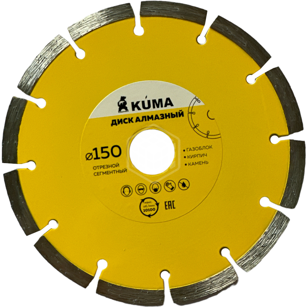 Характеристики товара Диск KUMA алмазный, сегментный, сухая резка, 150х22,2 мм, 101027