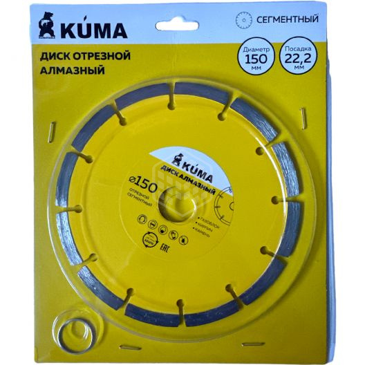 Диск KUMA алмазный, сегментный, сухая резка, 150х22,2 мм, 101027