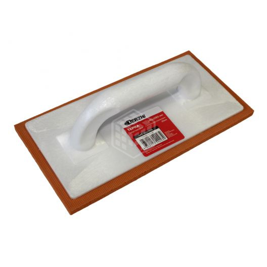 Доска терочная Derzhi, пластиковая, с латексным покрытием 10 мм, 280х140 мм предназначена для выполнения финишных отделочных работ. Подходит для осуществления качественной затирки различных поверхностей, выравнивания штукатурки и затирки во время укладки плитки. Отличительной особенностью инструмента является наличие латексного покрытия. Для удобства эксплуатации в конструкции изделия предусмотрена удобная рукоятка.