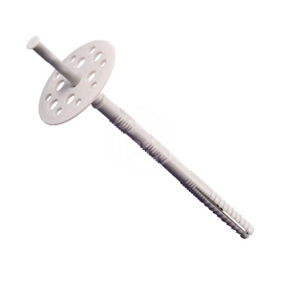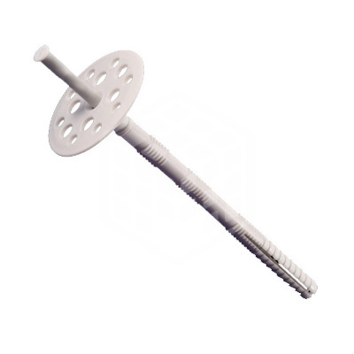 Дюбель для изоляции, 10х180 мм, IZO, 500 шт используется для прикрепления термоизоляционного материала (стекловаты, пенопласта, полиуретана) к стенам, подверженным неблагоприятным погодным явлениям (кирпичу, кладке бетонной, пенобетону). Материал теплоизоляции надежно удерживается большой цилиндрической шляпкой дюбеля, не допуская прорыва в месте крепления. Монтаж производится при помощи распорного стержня, забитого в дюбель. Дюбель изготавливается из полимерных материалов.