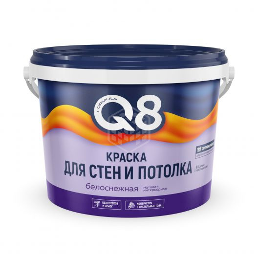 Характеристики товара Краска интерьерная Formula Q8, белоснежная, 2,7 кг
