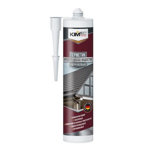Герметик каучуковый KIM TEC, кровля, фасад, водосток, красный, 280 мл для кровельных и фасадных работ. Обладает отличной адгезией к различным видам кровельных материалов и водосточных систем. Применяется на влажных поверхностях. Устойчив к атмосферным воздействиям и ультрафиолету. Быстрый и прочный. Водонепроницаемый. Совместим с битумом и медью.