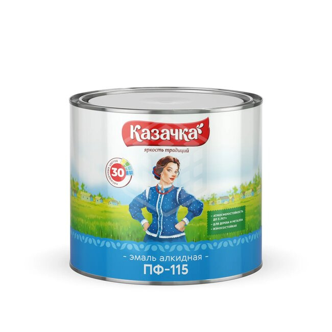 Эмаль Казачка ПФ-115, зелёное яблоко, 1,9 кг представляет собой отличный лакокрасочный состав, предназначенный для окрашивания различных деревянных и металлических поверхностей. Подходит для нанесения на оконные рамы, подоконники, двери, решетки и различные металлические конструкции. Атмосферостойкие свойства конечного покрытия позволяют использовать эмаль как в целях осуществления внутренних покрасочных работ, так и внешних. Наличие в составе изделия разнообразных модифицированных заменителей положительным образом сказывается на цене продукта, оставляя практически неизменным высокий уровень качества. Краска отличается устойчивым глянцевым блеском и ровным однотонным цветом. Для достижения повышенного качества обработки, лакокрасочный материал рекомендуется использовать на предварительно огрунтованных поверхностях. Растворителями для эмали выступают сольвент и уайт-спирит. Необходимо отметить, что продукт не предназначен для окраски пола.