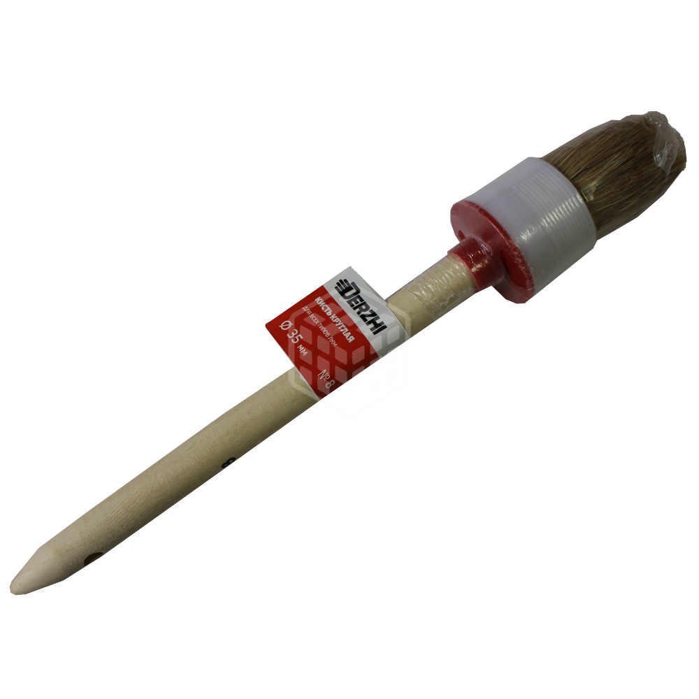 Кисть круглая Derzhi Мастер, натуральная щетина, №8, 35 мм, 8103-8-35 представляет собой ручной малярный инструмент, используемый в целях нанесения лакокрасочных материалов. Применяется при ремонтных и малярных работах. Инструмент предназначен для окраски труднодоступных поверхностей. Ворс кисти изготовлен из светлой натуральной щетины, которая закреплена пластиковым бандажом, что делает инструмент максимально долговечным. Ручка имеет отверстие для подвешивания. Подходит для работы с любыми лакокрасочными материалами.