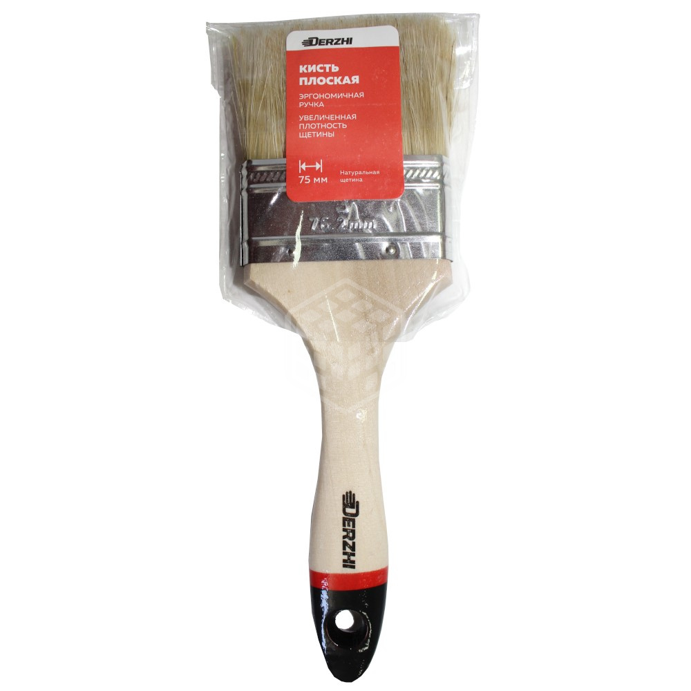 Характеристики товара Кисть плоская Derzhi Профи, натуральная щетина, 75 мм