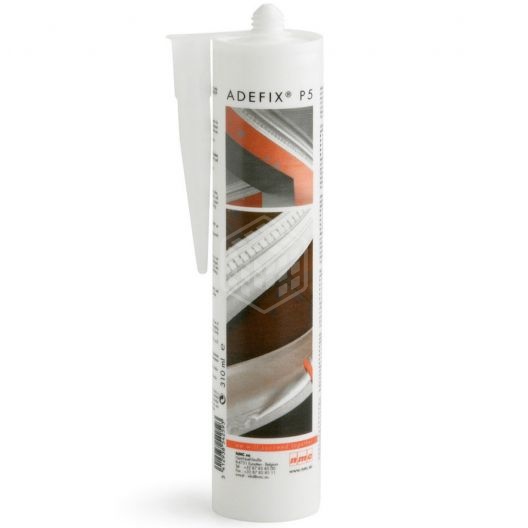 Клей-шпатлёвка Adefix Р5, 310 мл представляет собой пастообразный клей-шпатлёвку, предназначенную для приклеивания различных декоративных изделий. В частности, клей используется в целях фиксации на плотном основании с пористой структурой экструдированного полистирола или пенополистирола и полиуретана. В качестве подложки могут выступать различные пористые поверхности - кирпич, бетон, штукатурка и пр. Данный состав не содержит растворителей, а после затвердевания сохраняет некоторую эластичность, что повышает устойчивость места фиксации к механическим воздействиям. Нанесение клея производится при помощи пистолета. Сделано в Бельгии.