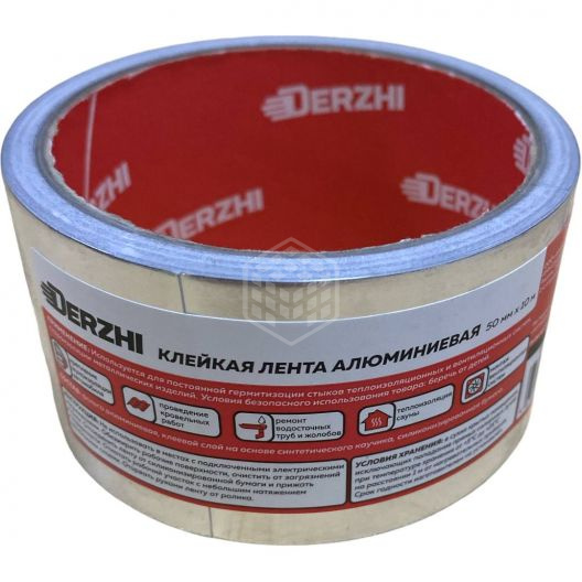 Характеристики товара Клейкая лента Derzhi, алюминиевая, 50 мм, 10 м, 15 мкр