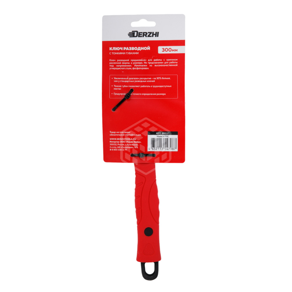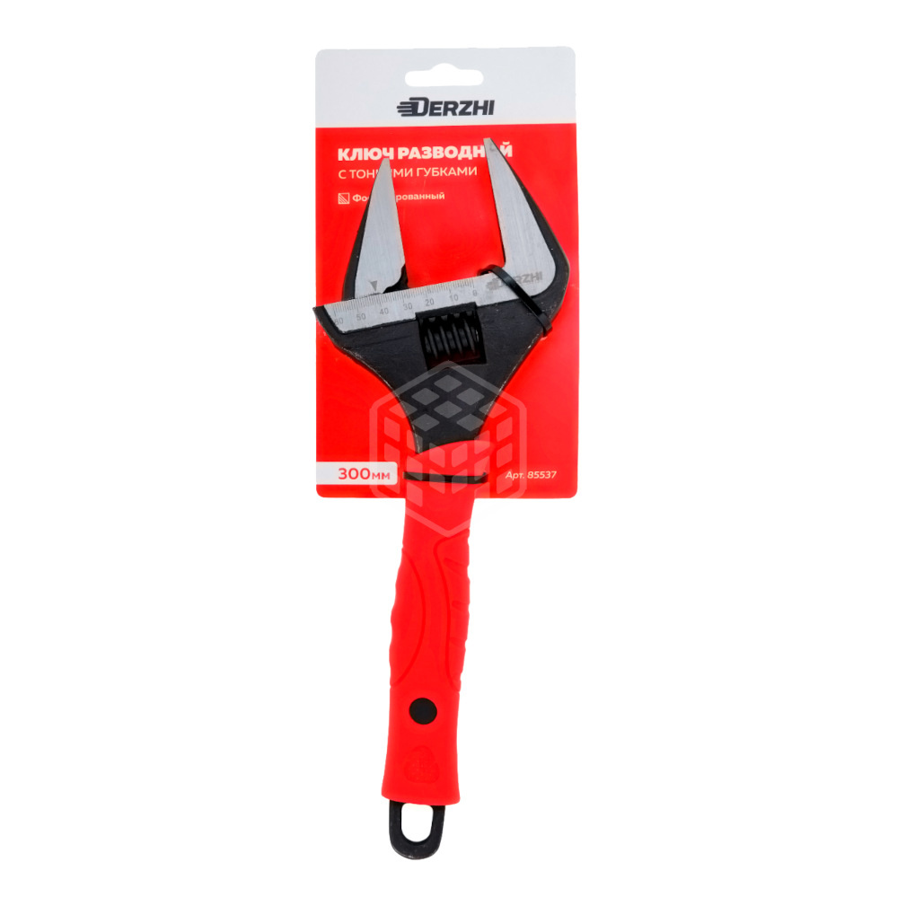 Характеристики товара Ключ разводной DERZHI, тонкие губки, фосфатированый, 300 мм, 85537