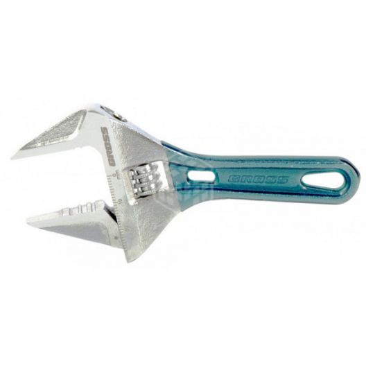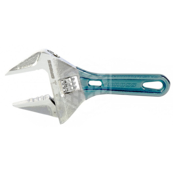 Ключ разводной Gross, 120 мм, CrV, укороченная ручка, 15564 на 30% легче стандартного ключа; Специальная форма губок предотвращает проскальзывание и обеспечивает усиленный хват; Эргономичная двухкомпонентная рукоятка; Широкий диапазон раскрытия губок; Хромованадиевая сталь.