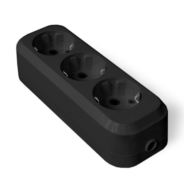 Колодка UNIVersal, 3 гнезда, с/з, AБС-пластик, черный, еврослот, 1307
