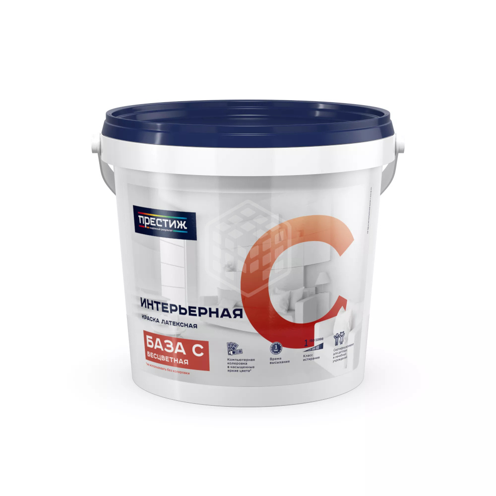 Характеристики товара Краска латексная под колеровку Престиж, фасадная, База С, 9 кг