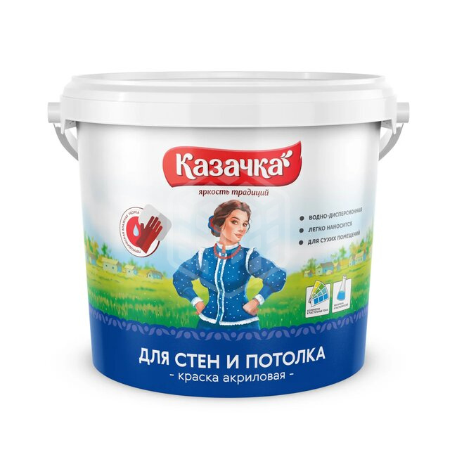 Характеристики товара Краска Казачка ВД-АК для стен и потолков 6,5 кг