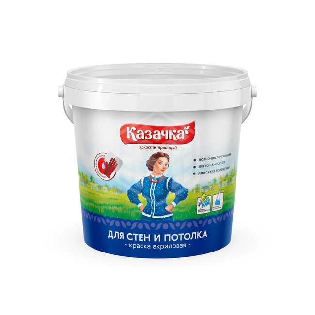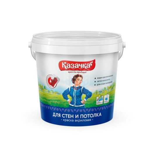 Краска "Казачка" водно-дисперсионная акриловая интерьерная используется для стен и потолков различных жилых помещений. Она быстро высыхает, легко ложится и может быть применима совместно с колерами разнообразных оттенков для придания желаемого цвета. Производится вещество на основе водной дисперсии акрилового сополимера, целевых добавок, собственно воды, а также наполнителя, служит на протяжении длительного периода времени. Краска отлично противостоит излишней влаге и воздействию ультрафиолетовых лучей - не выцветает и трескается долгие годы.