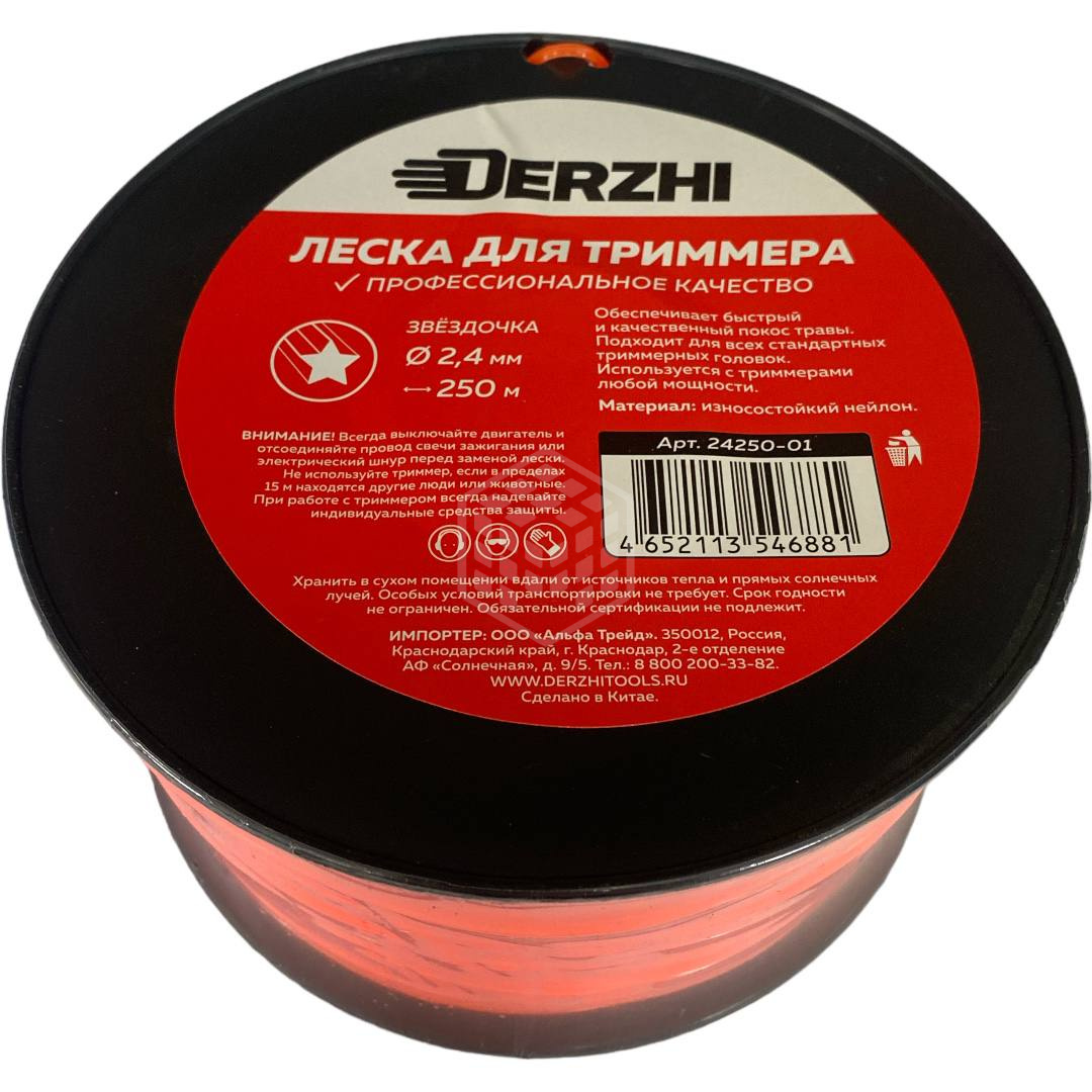 Леска для триммеров Derzhi, звездочка, 2,4 мм, 250 м, бобина