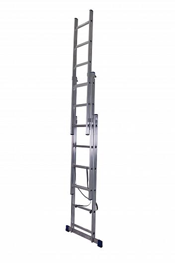 Лестница Stairs 3x6, трехсекционная, универсальная, 1,69 м, AL306 используется при выполнении различных работ на высоте. Изготовлена из алюминия, благодаря чему отличается небольшим весом и прочностью. На ступенях предусмотрено рифление, оно предотвращает проскальзывание стопы при подъеме и спуске.