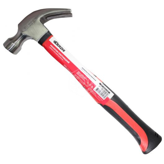 Характеристики товара Молоток-гвоздодёр Derzhi, с фиберглассовой ручкой, 450 г