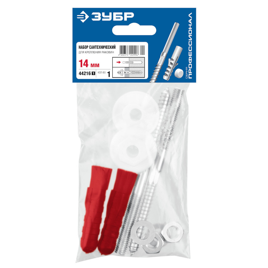 Характеристики товара Набор Зубр Профессионал, для крепления раковин, 14 мм, 44216