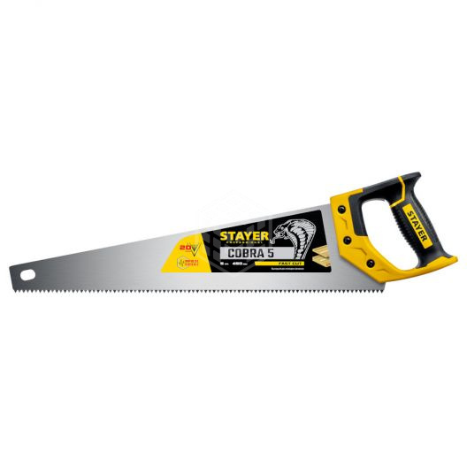Ножовка по дереву STAYER Cobra 5, 450 мм, 5 tpi, прямой крупный зуб, быстрый рез