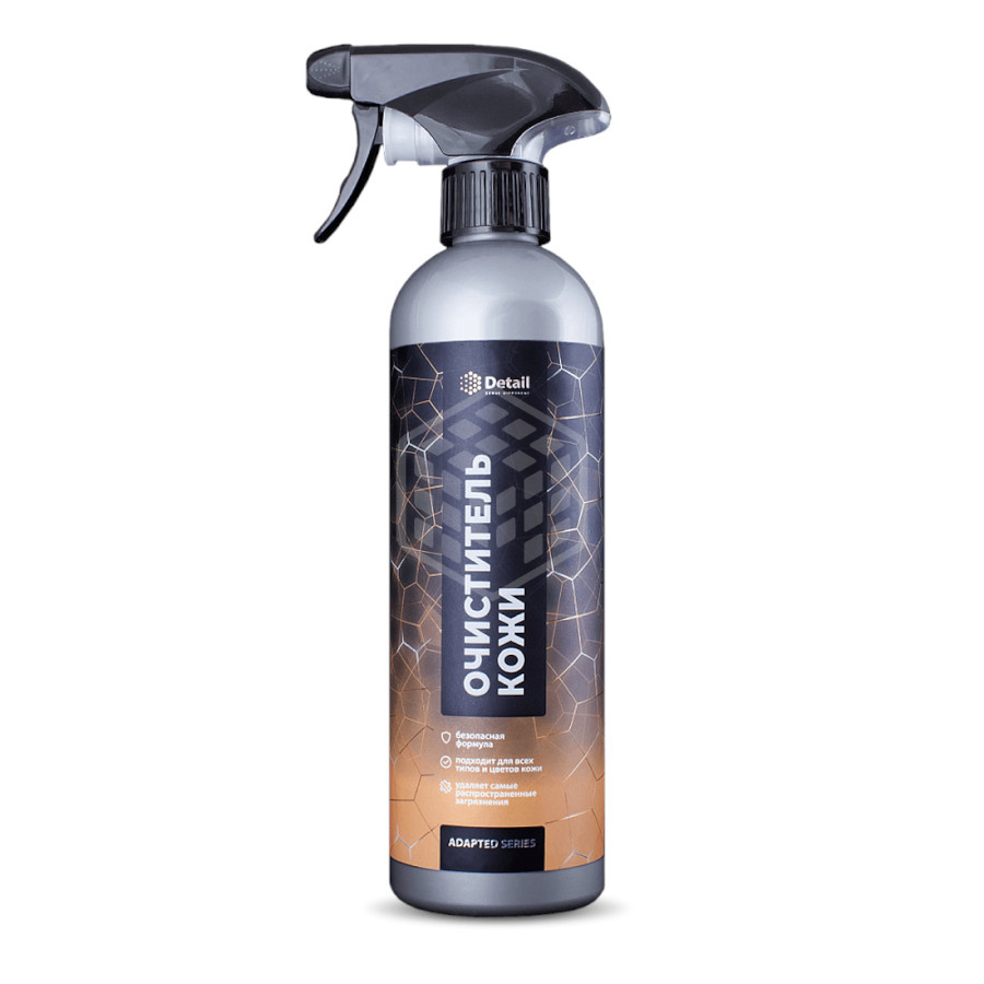 Очиститель кожи Detail Leather Clean Adapted Series 500 мл для очистки различных видов загрязнений с кожаных поверхностей. Уникальная комбинация компонентов состава обеспечивает максимально бережную и эффективную очистку поверхностей из кожи различных цветов и текстур, не повреждая их целостность и структуру. Проникая глубоко в поры кожи, состав мягко удаляет самые распространенные загрязнения с кожаной обивки салона автомобиля. Простота применения средства позволяет с одинаковой лёгкостью производить очистку кожи, как профессионалам, так и любителям. Состав готов к применению.