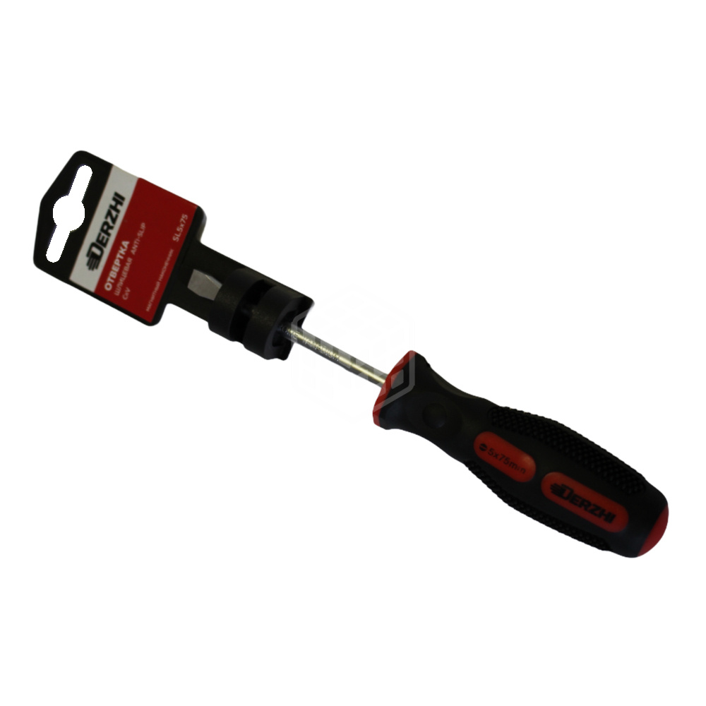 Характеристики товара Отвертка шлицевая Derzhi SL5х75, Anti-Slip, с обрезиненной рукояткой