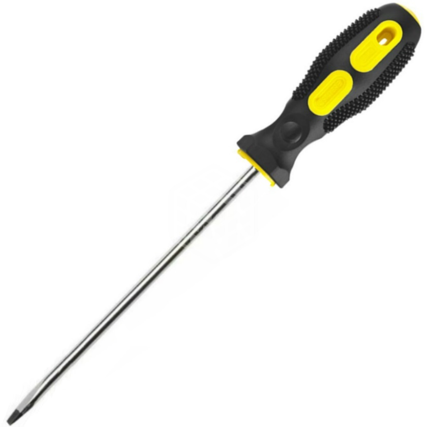 Отвёртка Stayer Master, SL, Cr-v, 5,0х150 мм служит для монтажа и демонтажа различных крепёжных резьбовых соединений, обладающих прямым шлицем типа SL. Рабочая область инструмента имеет размер 5 мм, и подходит для работы с соответствующим крепежом. Стержень изделия изготовлен из качественной хромованадиевой стали, что позволяет обеспечить высокую степень прочности данного инструмента, а также большой срок эксплуатации. Одним из преимуществ модели является намагниченный оксидированный наконечник, позволяющий использовать инструмент для работ в труднодоступных местах. Удобству использования служит двухкомпонентная прорезиненная рельефная ручка, она повышает безопасность и комфорт при работе.