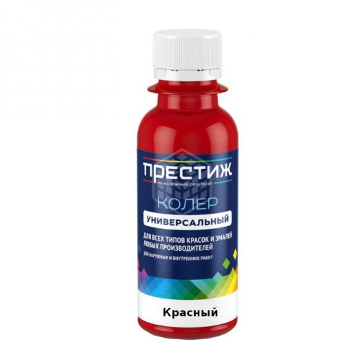 Паста колеровочная Престиж универсальная, №034 красный, 100 мл для колеровки эмалей, красок, лаков и шпатлёвок всех типов: латексных и акриловых на водной основе, алкидных на органических растворителях, масляных на олифах и других лакокрасочных материалов, а также цементных составов, штукатурок, затирок для швов. Для наружных и внутренних работ. Универсальность применения, светостойкость, яркость, насыщенность оттенков.