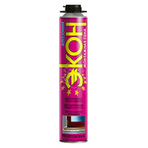 Пена Экон, профессиональная, всесезонная, 700 мл - монтажные работы в любое время года с применением пистолета для пены. Шумо-теплоизоляция, фиксация, заполнение полостей и другие работы с различными материалами.