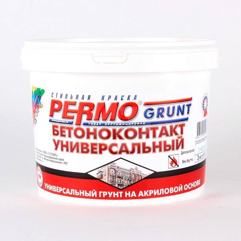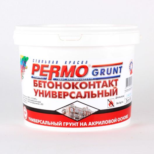 Характеристики товара PERMO Грунт Бетоноконтакт универсальный на акрил.основе 3 кг