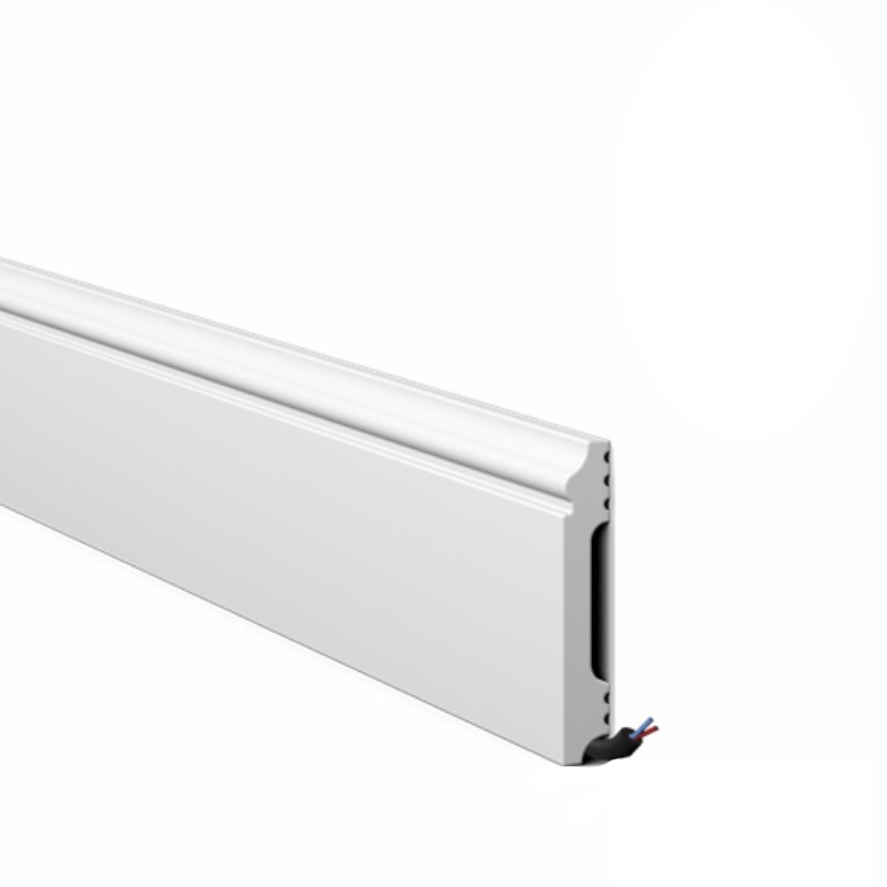 Напольный плинтус NMC FL1, 80х12 мм, 2 м, 23 шт - это упаковка из 23 напольных плинтусов из ударопрочного полимерного материала с гладким профилем 80х12 мм и длиной 2 метра каждый. Плинтусы поставляются белыми, прогрунтованными под покраску, обладают влагостойкостью и монтируются на клей. Коллекция характеризуется современным дизайном, ударопрочностью и возможностью использования для скрытия кабелей.