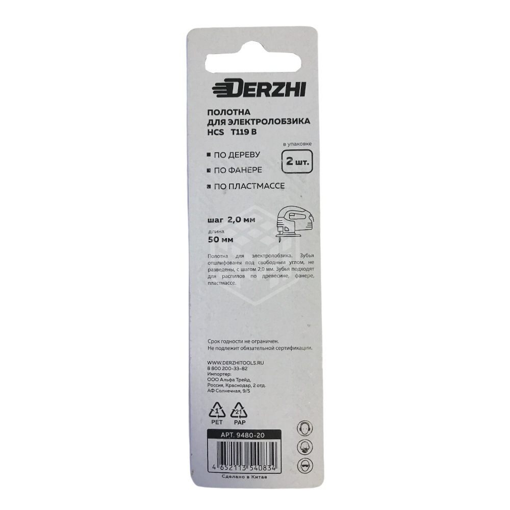 Характеристики товара Полотно пильное для лобзика Derzhi T119B, по дереву, 2 шт