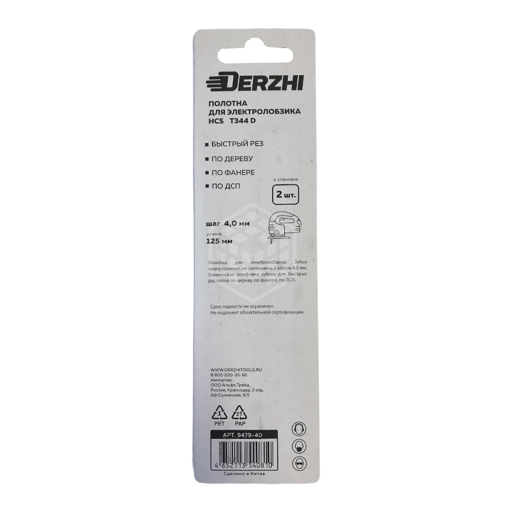 Характеристики товара Полотно пильное для лобзика Derzhi T344D, по дереву, 2 шт