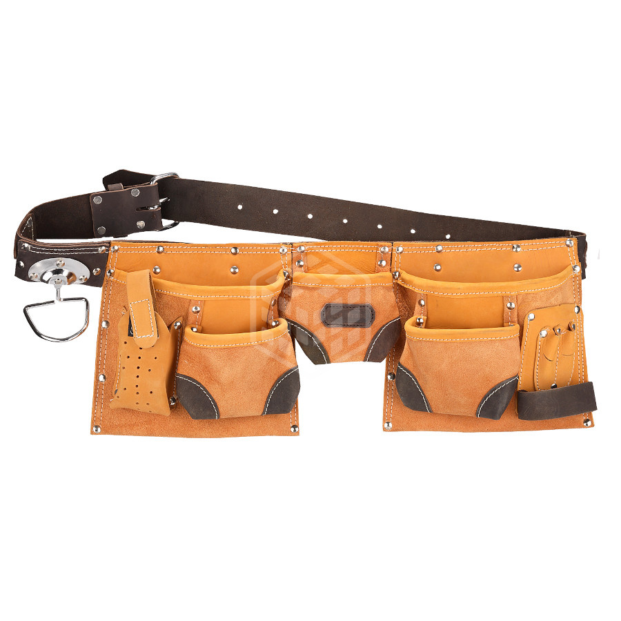 Пояс Kraftool для инструментов, натуральная кожа, 9 карманов, 1-38520 для переноски разнообразного инструмента, необходимого при проведении ремонтно-монтажных работ.