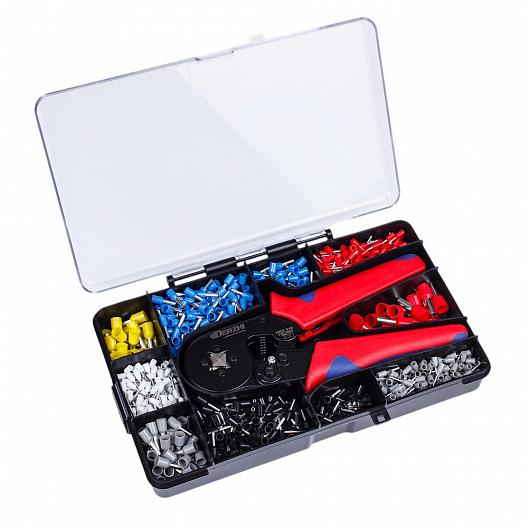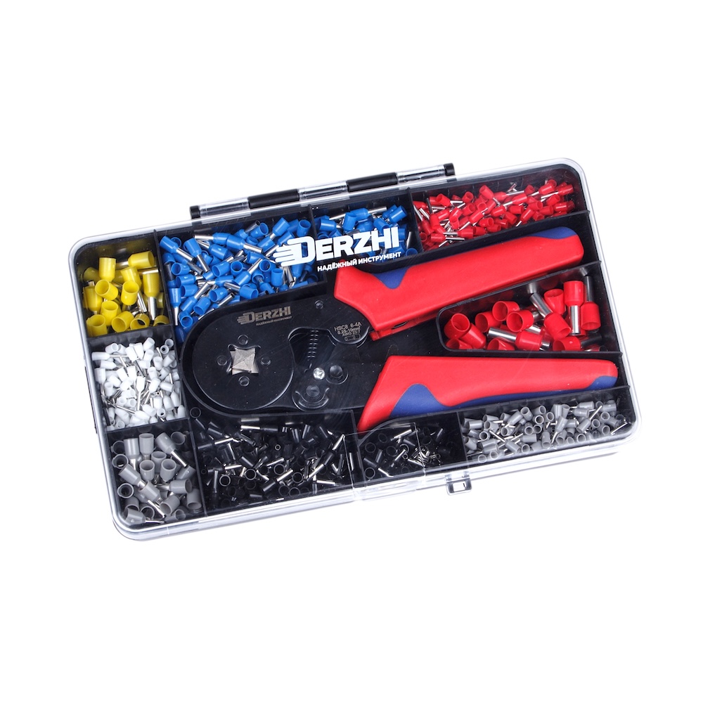 Пресс-клещи DERZHI Кримпер для обжима кабельных наконечников, пластиковый кейс, 1200 наконечников, 444-1200