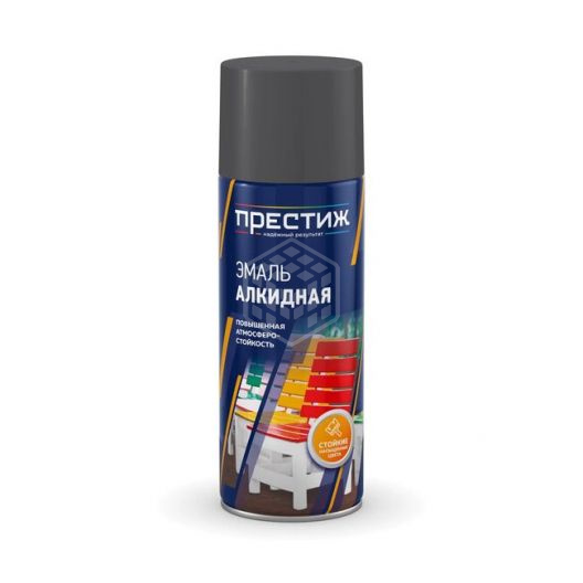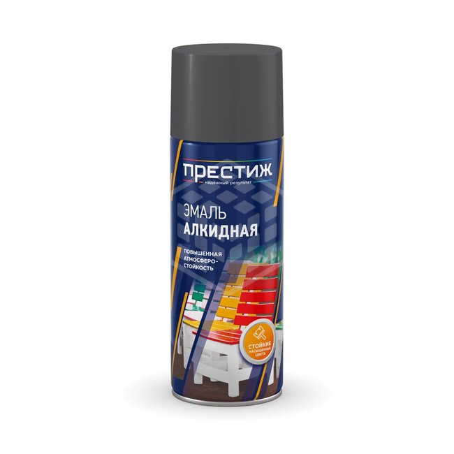 Характеристики товара Эмаль алкидная аэрозольная Престиж, графитово-серая, 425 мл.