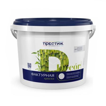 Краска Престиж, фактурная, рельефная, для ввр, белая, 5 кг - декоративная и защитная обработка стен, потолков, колонн и других элементов интерьера (кроме полов). Применяется по бетонным, кирпичным, асбестоцементным, оштукатуренным, гипсокартонным поверхностям, ДВП, ДСП, фанере. Для наружных и внутренних работ. Позволяет получить разнообразные рельефные узоры в зависимости от применяемого инструмента и фантазии. Высоковязкий фактурный материал белого цвета. Содержит мелкозернистый кварцевый наполнитель. Скрывает мелкие дефекты стен, не требует тщательной подготовки поверхности. Толщина слоя — до 3 мм. Отличается высокой твёрдостью, водо- и атмосферостойкостью. Образует паропроницаемое покрытие. Скрывает мелкие дефекты стен. Легко наносится, быстро сохнет, не желтеет, обладает хорошей адгезией, укрывистостью. Без запаха и растворителей.