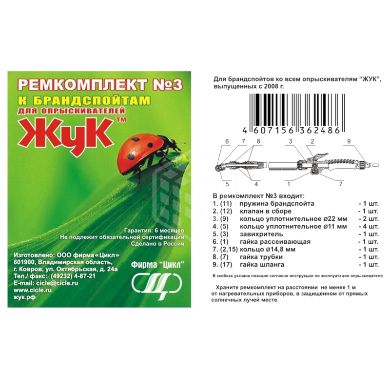 Характеристики товара Ремкомплект Жук №3 к брандспойтам для опрыскивателей