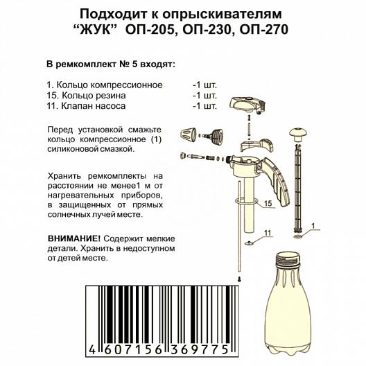 Характеристики товара Ремкомплект ЖУК №5 к опрыскивателям ОП-205, ОП-230, ОП-270