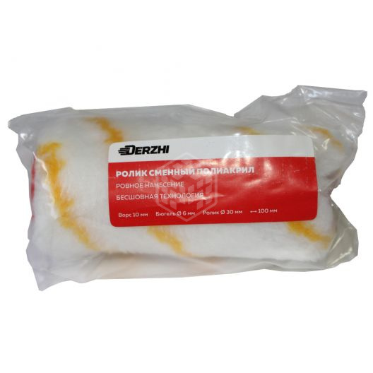 Характеристики товара Ролик сменный Derzhi, полиакрил, ворс 10 мм, 30х100 мм